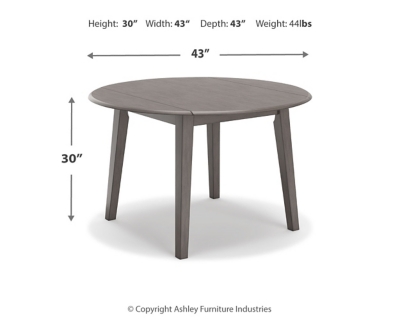 Series Features:Casual contemporary design. Made with select veneers, MDF substrate and hardwood solids. Medium gray wood finish contrasted nicely with a charcoal gray polyester fabric chair seat. Round dining table with 2 small drop leaves to make the most of your dining area. Dining chair features a contemporary spindle back design with shaped front legs for today's casual lifestyles.