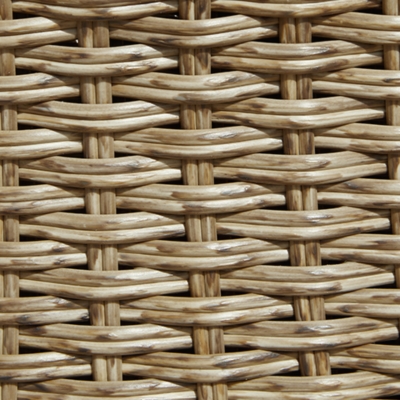 Series Features:Powder coated steel frame. Resin wicker dining chairs and table. Resin wood look tabletop with umbrella hole. Black frame/tan wicker. Assembly required. Ashley Express.